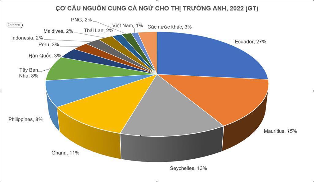 Theo số liệu thống kê của Trung tâm Thương mại Thế giới (ITC), Anh hiện đang là 1 trong 10 thị trường NK cá ngừ lớn trên thế giới. Anh NK cá ngừ từ hơn 45 nước trên thế giới, trong đó Việt Nam là nguồn cung cá ngừ lớn thứ 13, chiếm 1% tổng NK cá ngừ của nước này. Năm 2022, mặc dù XK cá ngừ của Việt Nam sang Anh vẫn tăng gần 10% về giá trị, nhưng nguyên nhân là do giá trung bình XK sang thị trường này tăng.