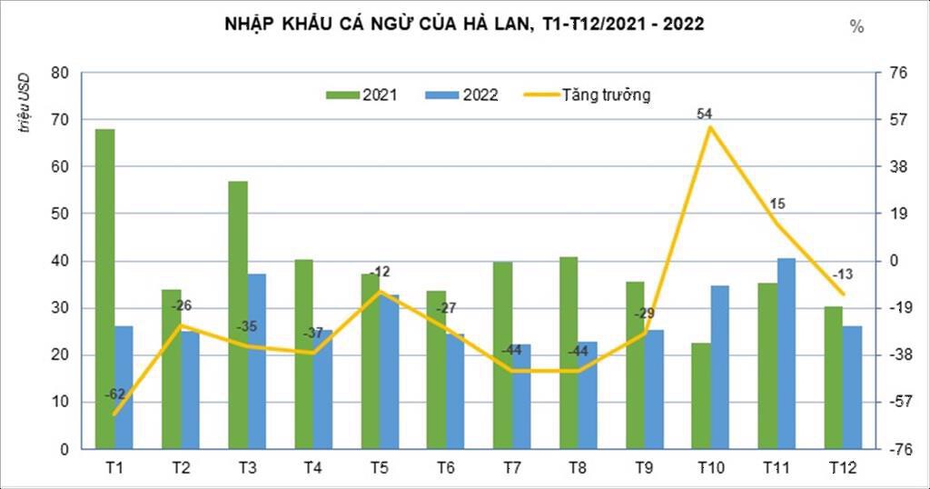 Theo số liệu thống kê của Trung tâm Thương mại Quốc tế (ITC), NK cá ngừ của Hà Lan năm 2022 đạt 343 triệu USD, thấp nhất trong vòng 4 năm trở lại đây.