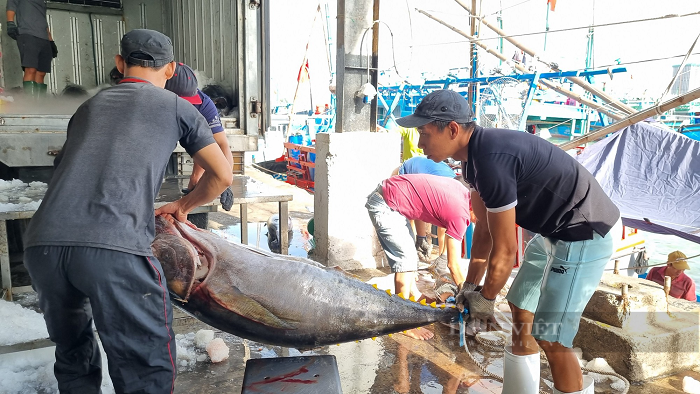 Qua nghi nhận của PV, nhiều tàu cá các tỉnh Bình Định, Quảng Ngãi, Phú Yên và Khánh Hòa sau chuyến đánh bắt xuyên Tết Quý Mão năm 2023 nhiều tàu đã bắt đầu cập cảng mang cá ngừ đại dương về bán cho các thương lái.