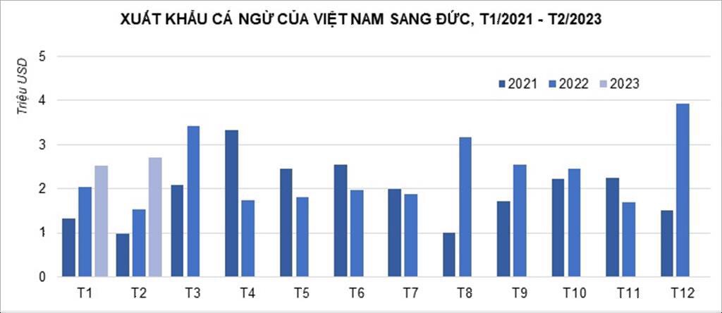 Năm 2022, Đức cũng là thị trường NK cá ngừ lớn nhất của Việt Nam trong khối EU, chiếm khoảng 3% tổng kim ngạch XK cá ngừ, tăng 20% so với năm 2021.